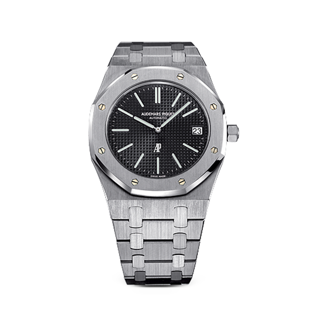 Powered by the ultra-thin Audemars Piguet Calibre 2121 automatic movement, this pioneering timepiece combines elegant proportions with mechanical refinement. Protected by a sapphire crystal and fitted with a closed caseback, it remains a timeless symbol of design innovation in haute horology.
