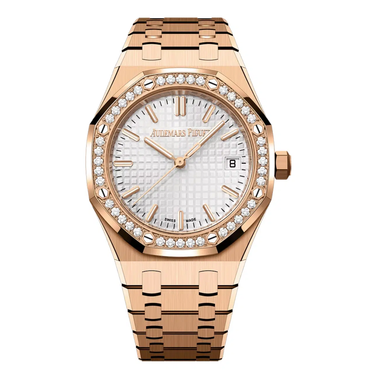 Audemars Piguet Royal Oak Self-winding 15400 Indiex Dial Rose Gold Iced Out Mens Watch