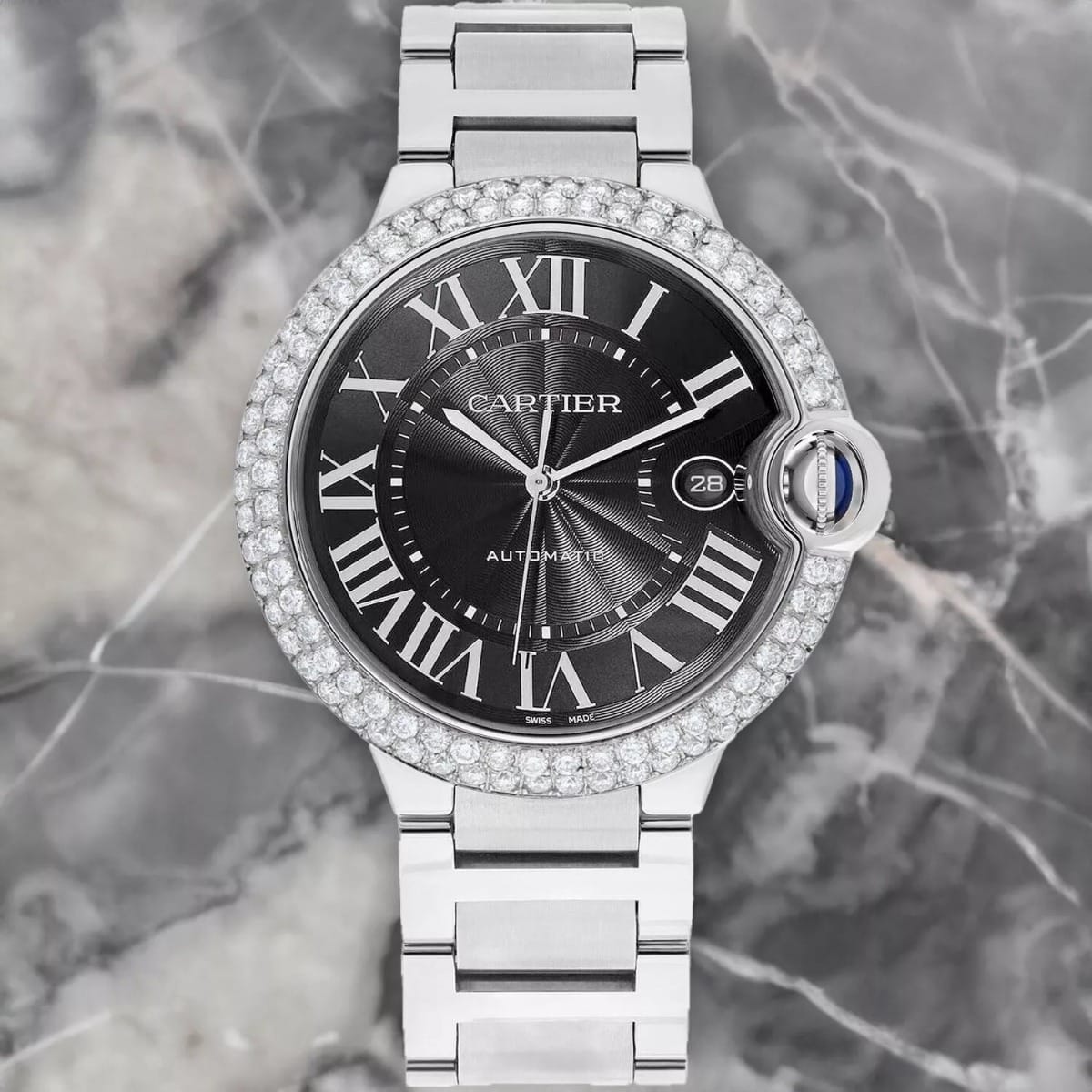 Cartier Ballon Bleu W6920042 Automatic Grey Dial Stainless Steel Diamond Watch