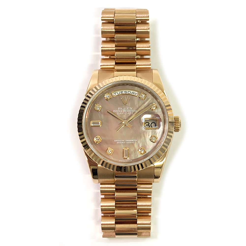 The Rolex Day-Date, known as a Rolex Presidential is worn by many of the world's elite and has become a symbol of influence, power and status. Due to their innovative design and a unique place in history, Rolex Day-Date wristwatches are among the most desirable pre-owned watches around.