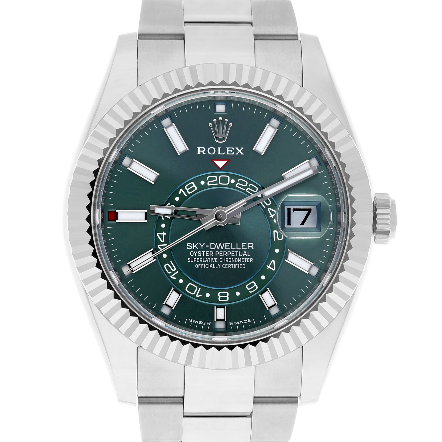 Rolex Sky-Dweller Jubilee 42mm Stainless Steel Green Dial Fluted 336934 Unworn
