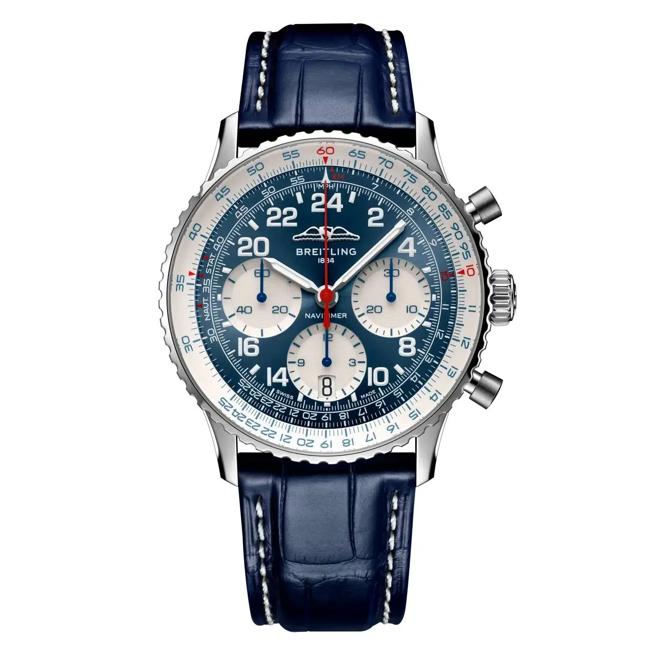 Breitling Navitimer B02 Chronograph LB0240211C1P1 41mm Blue Dial Bi-Directional Bezel Platinum With Blue Alligator Leather Strap Watch
