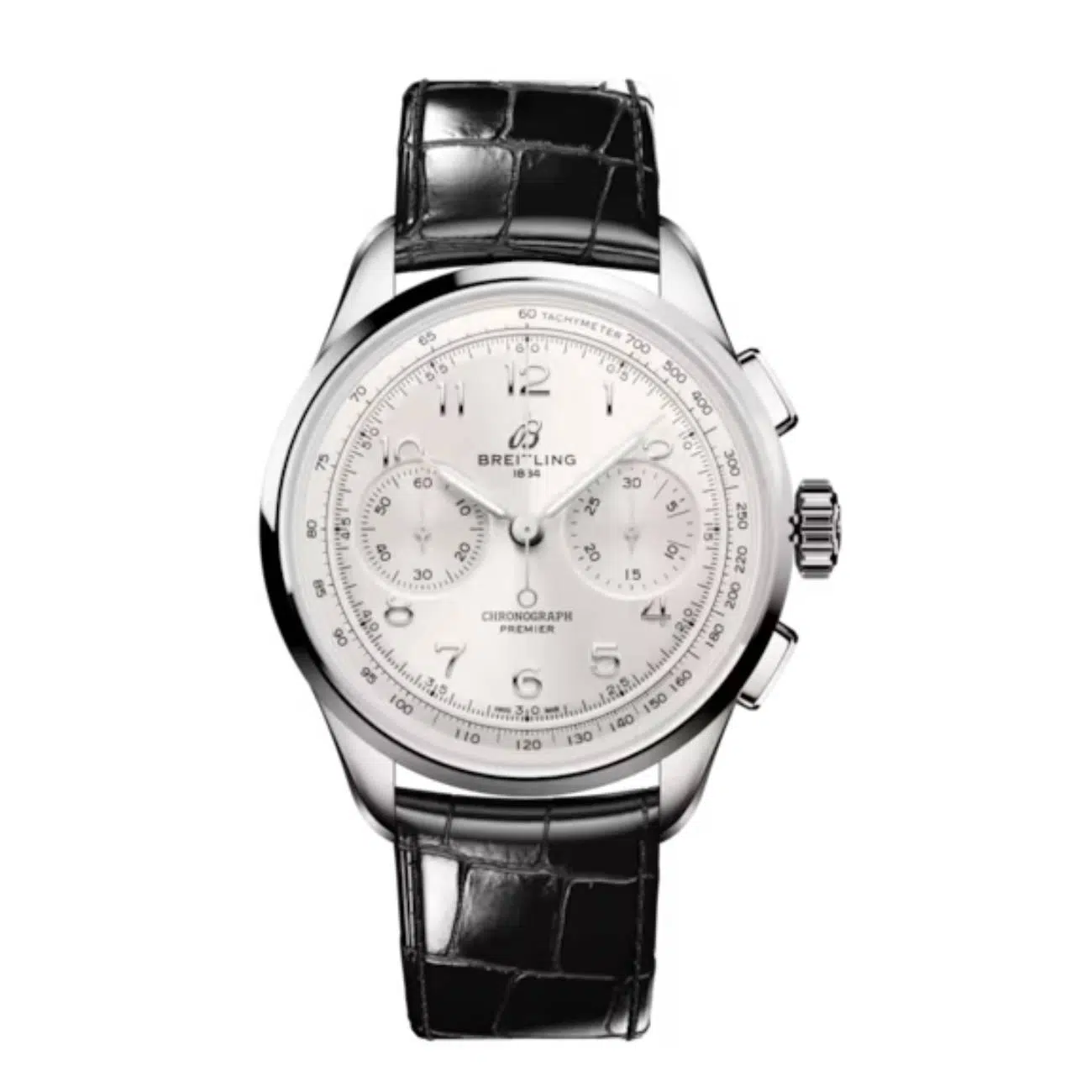 Breitling Premier B09 Chronogragh AB0930371G1P1 40mm Silver Dial Fixed Bezel Stainless Steel with Black Alligator Leather Strap Watch