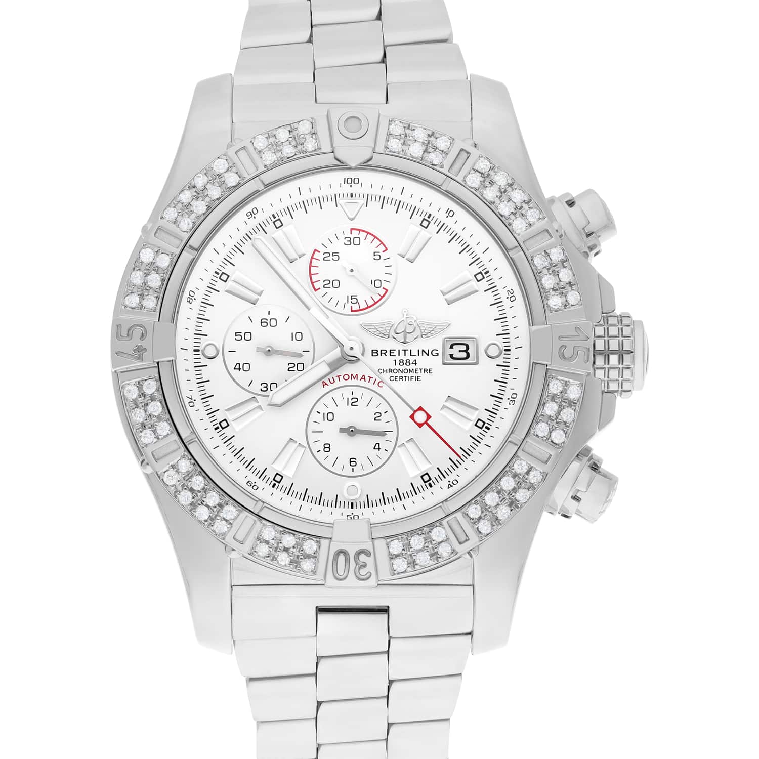 Breitling Super Avenger SS Chronograph White Index 48mm Diamond Bezel A13370