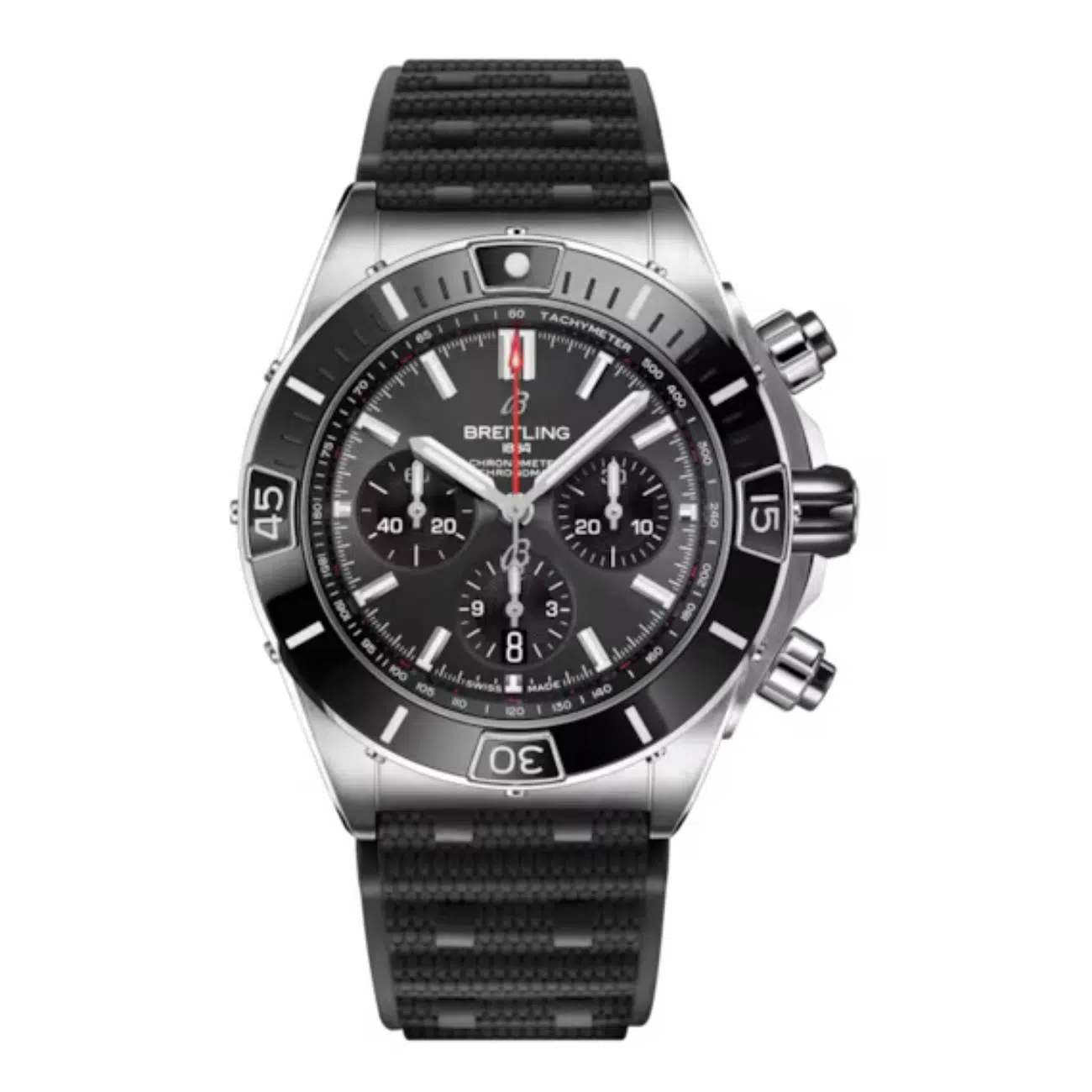 Breitling Super Chronomat B01 AB0136251B2S1 44mm Anthracite Dial Unidirectional Ratcheted Rotating Bezel Stainless Steel With Black Rubber Strap Watch