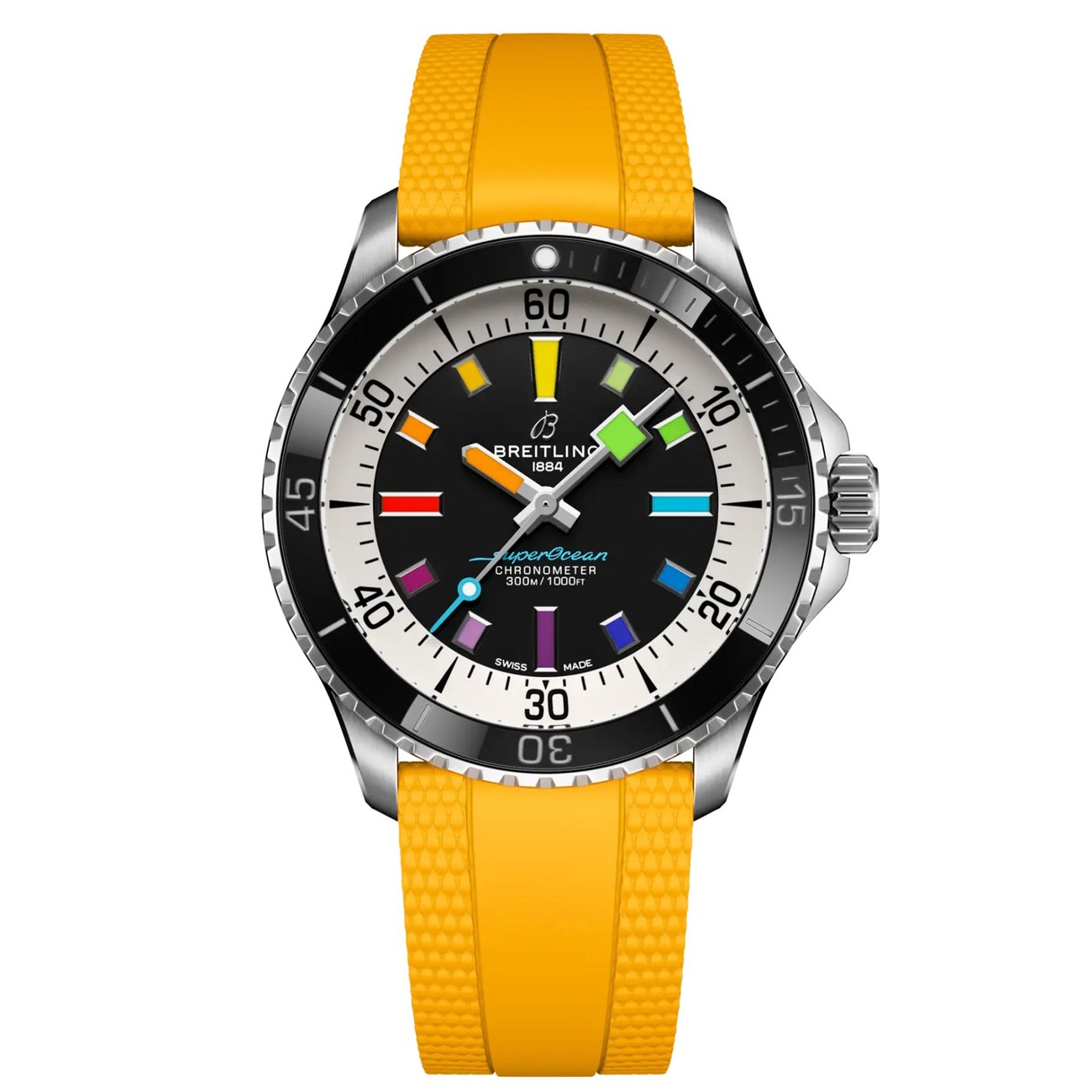 Breitling Superocean Automatic 42mm A17375211B2S4 Stainless Steel With Yellow Rubber Watch Black Dial