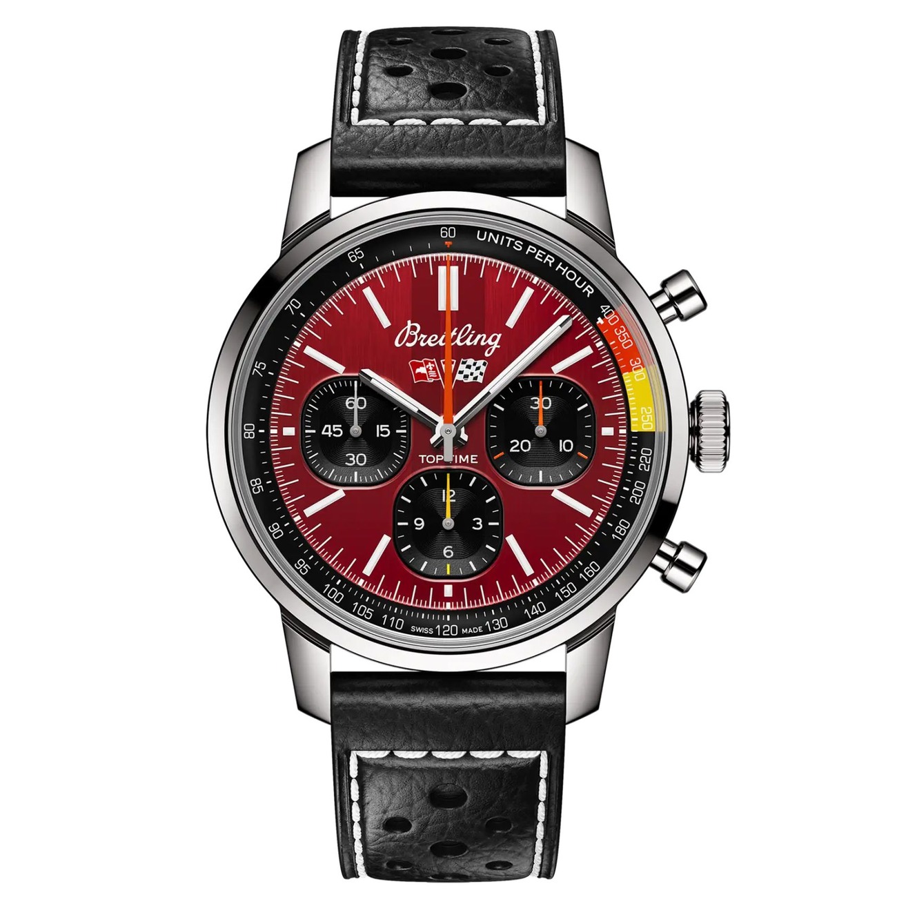Breitling Top Time AB01761A1K1X1 B01 Chevrolet Corvette 41mm Red Dial Fixed Bezel Stainless Steel in Black Calfskin Leather Strap Watch
