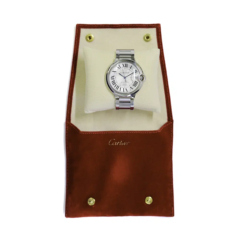 Meet the Cartier Ballon Bleu WSBB0016 — a modern icon with a perfectly rounded case that curves around the fluted crown set with a blue cabochon. Roman numerals and sword-shaped hands deliver unmistakable Cartier elegance in a clean, versatile design. A refined statement piece for every day.