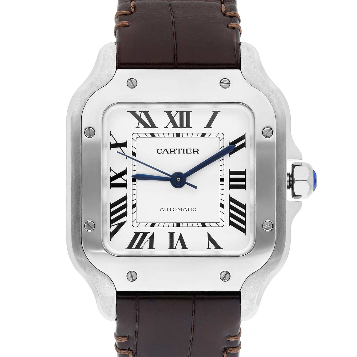 Cartier Santos De Cartier WSSA0029 Medium Size Stainless Steel Watch Leather Band