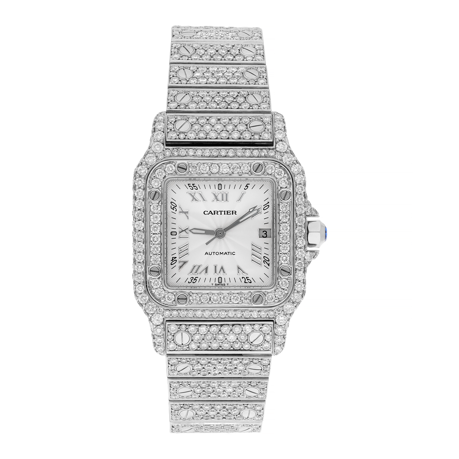 Cartier Santos Galbee 98790 Stainless Steel Custom Diamond Quartz Watch