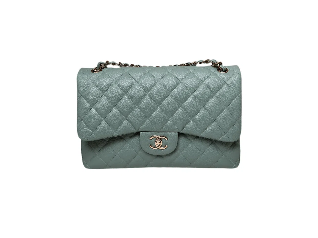 Chanel Jumbo Double Flap Bag Caviar Sage