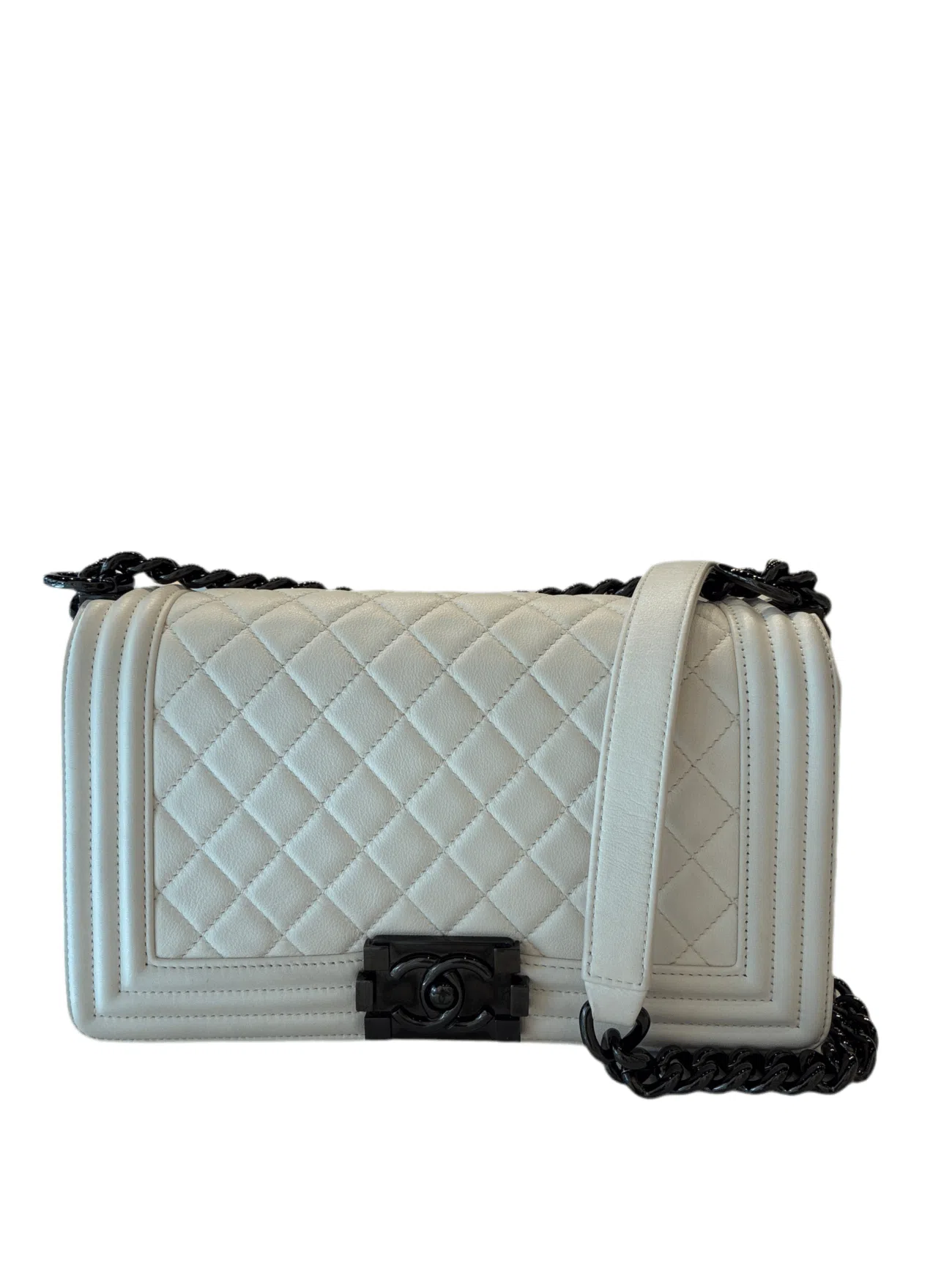 Chanel Medium Boy Bag – White Lambskin.