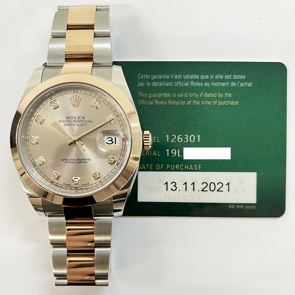 Launched in 2016, the Rolex 126301 is part of the new-generation Datejust 41 series. It replaced the 116301, introducing improved ergonomics and the advanced caliber 3235 movement with a 70-hour power reserve. The use of Everose gold, Rolex’s proprietary rose gold alloy, ensures the watch retains its warm color and luster over time.