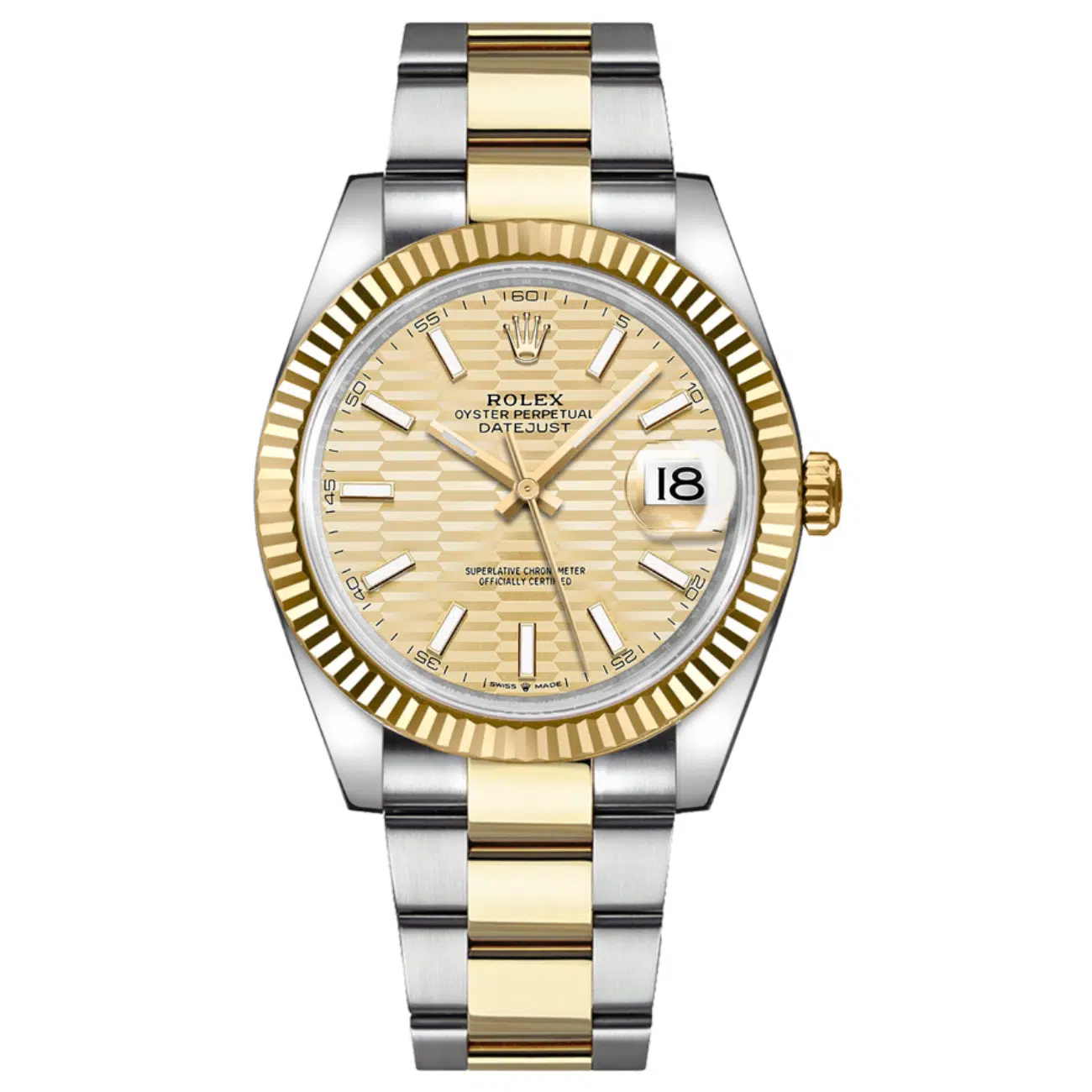 Steel for strength, 18 kt yellow gold for status: that’s Rolesor, and the Rolex Datejust 41 ref 126333 is its modern poster child. At 41 mm it wears like a contemporary sports watch, yet the fluted gold bezel, date‑magnifying Cyclops and five‑link Jubilee bracelet keep it unmistakably classic. Inside, calibre 3235 delivers 70 hours of COSC‑beating accuracy with Rolex’s Chronergy escapement. Whether you favour the champagne sunburst, slate‑green “Wimbledon” dial, or matte black with gilt markers, this two‑tone Datejust slots effortlessly between the boardroom and a beach wedding.