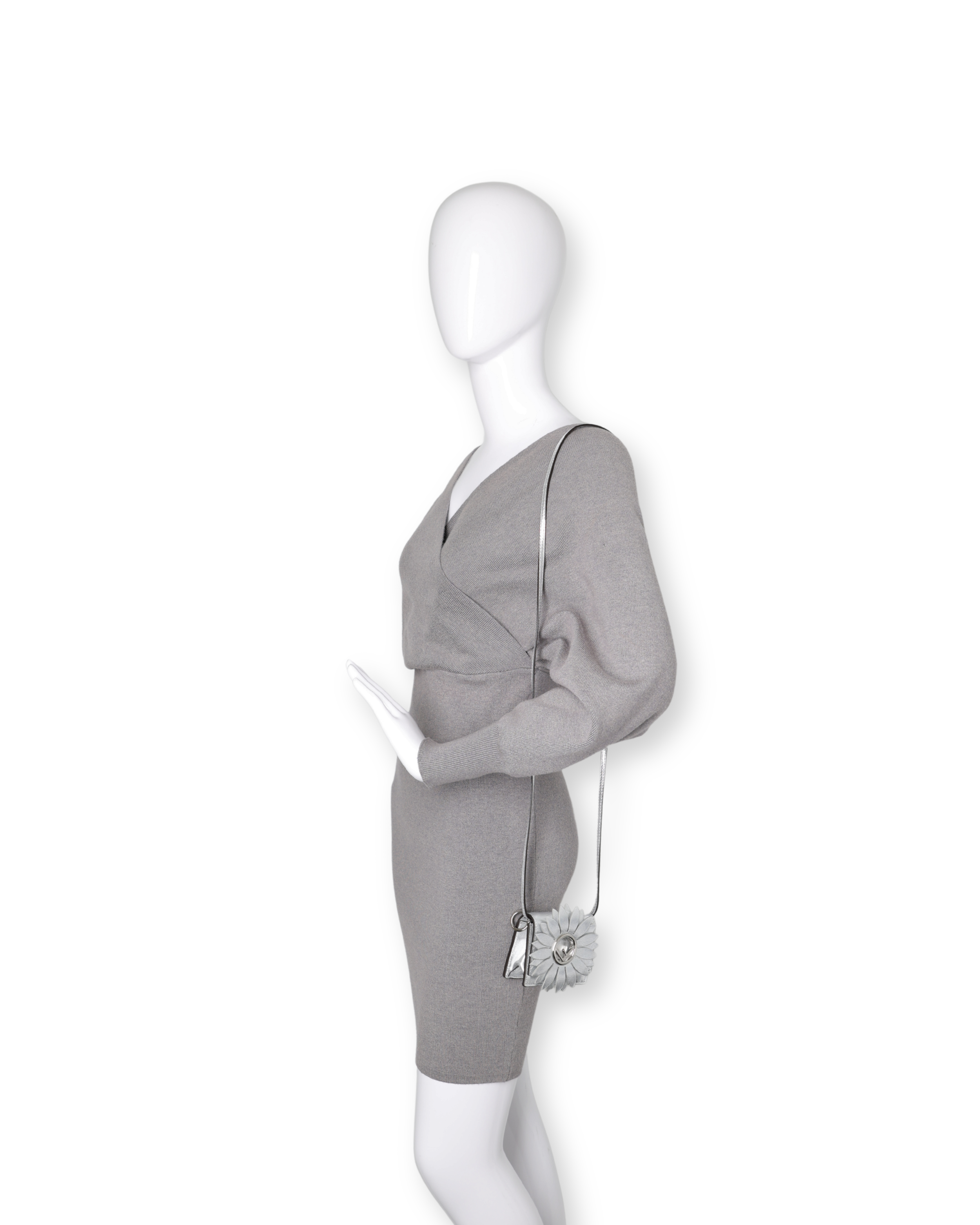 Fendi - Micro Baguette Charm in Silver Leather with Flower Appliqué (Pre-Owned)