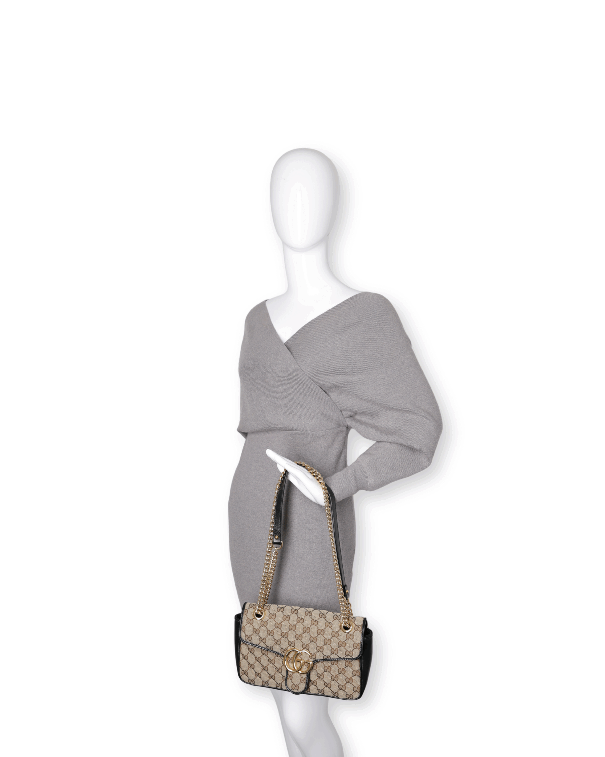 Gucci - Monogram Matelasse Diagonal Marmont Shoulder Bag Beige Black (Pre-Owned)