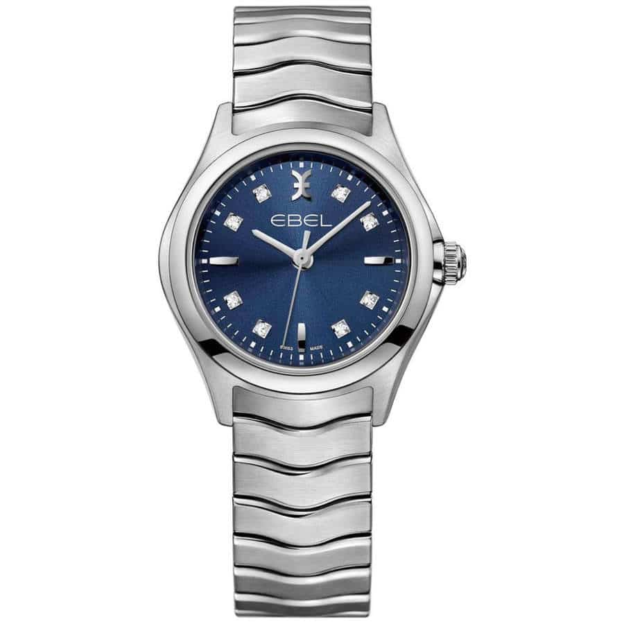Stainless steel case with a stainless steel bracelet. Fixed bezel. Blue galvanic dial with silver-tone hands and diamonds hour markers. Dial Type: Analog. Quartz movement. Scratch resistant sapphire crystal. Pull / push crown. Case size: 30 mm. Round case shape. Deployment with push button release clasp. Water resistant at 50 meters / 165 feet. Functions: hour, minute, second. Additional Info: dial set with 8 diamonds (0.052 t.c.w.). Dress watch style.