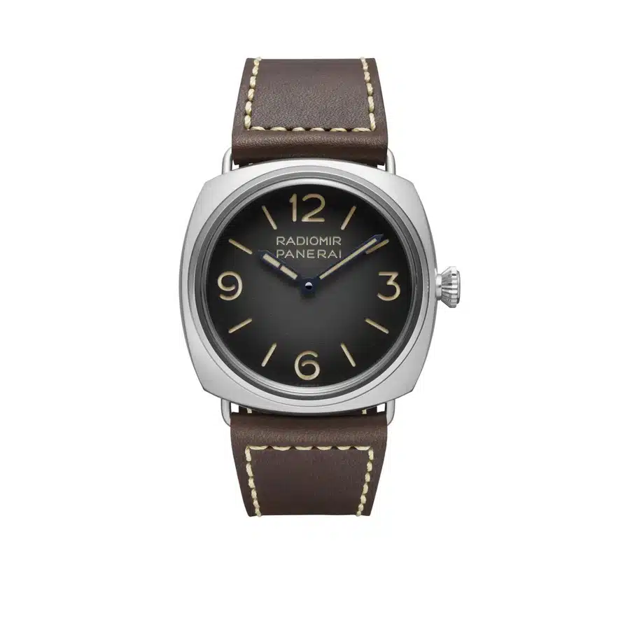 The Panerai PAM01334 45mm stainless steel case, men’s or unisex watch. Manual winding movement with the Caliber 6000, emphasizing traditional watchmaking artistry. Grey dial with luminescent hands and index-arabic hour marker. Brown leather strap Stainless steel buckle. Scratch resistant sapphire crystal.Measuring 195mm in length and featuring a 26mm lug width. With a case thickness of 14.5mm. Luxury watch style. Watch label: Swiss Made.