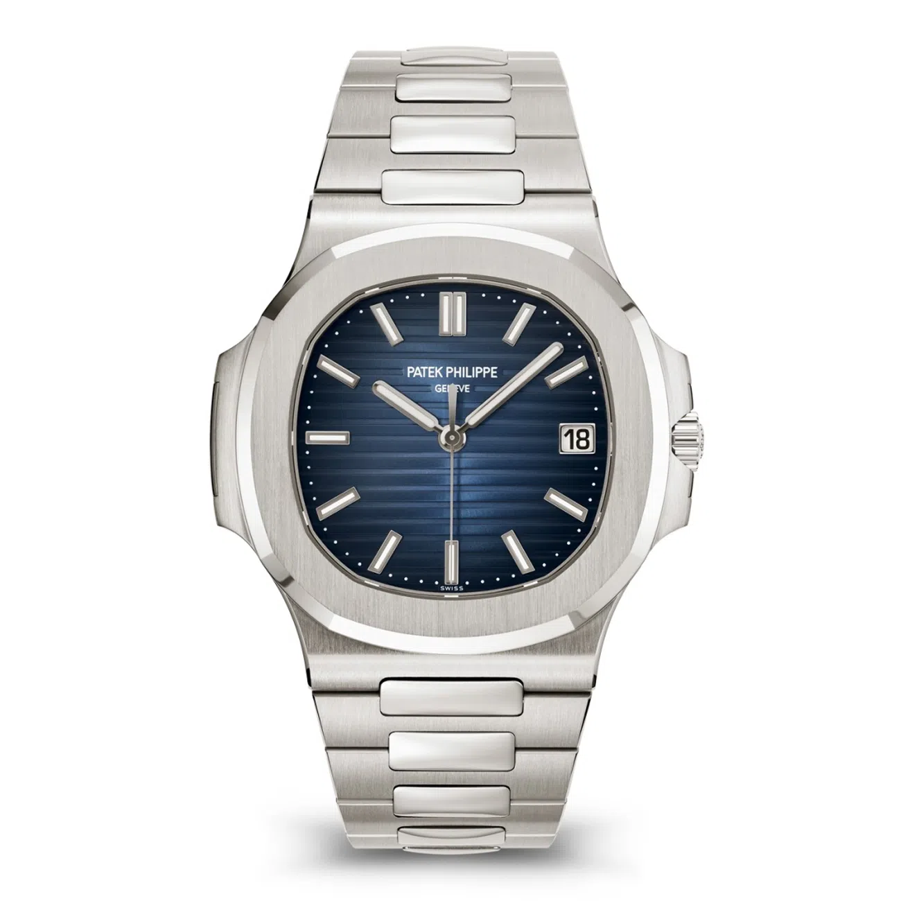 The Patek Philippe Ref. 5811/1G-001 Nautilus reinterprets a legendary design with contemporary sophistication. Crafted in white gold, its 41mm case and bracelet pay homage to the original 1976 model while introducing refined updates. The striking blue sunburst dial, fading to black at the edges, features luminous gold hour markers and horizontal embossing for timeless elegance. Powered by the self-winding Caliber 26-330 S C/430, it includes a date aperture and sweep seconds, visible through the sapphire case back.