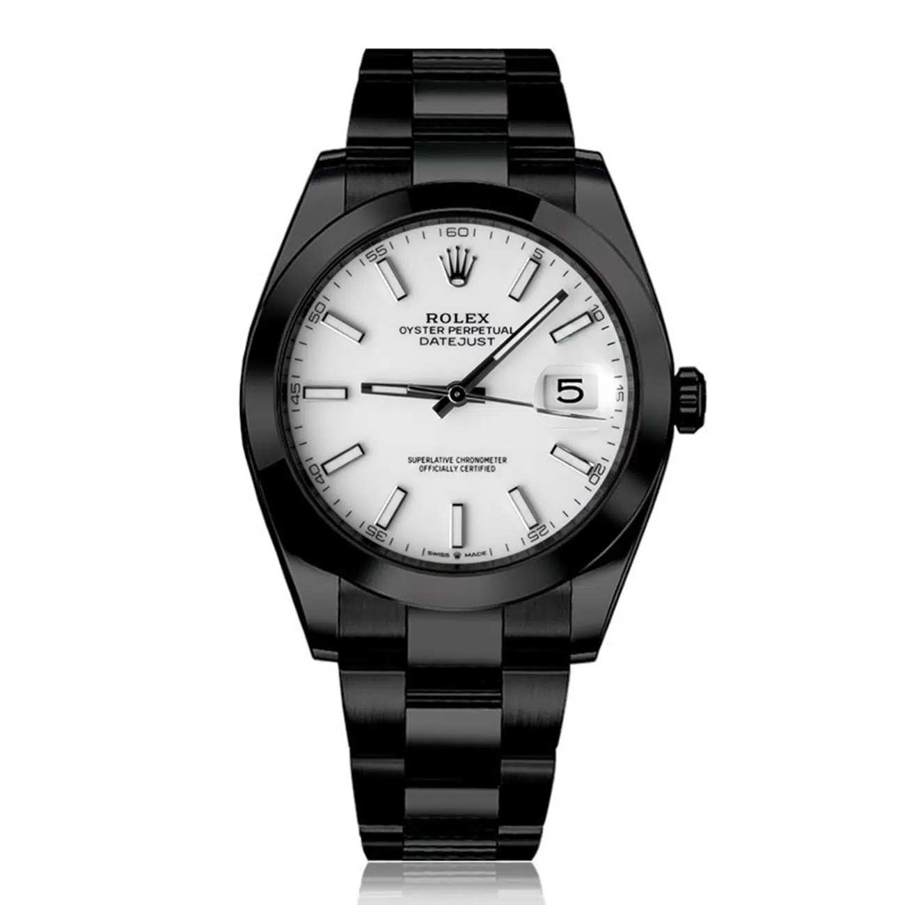 Rolex 41mm Datejust Black PVD/DLC Watch Oyster Band White Dial