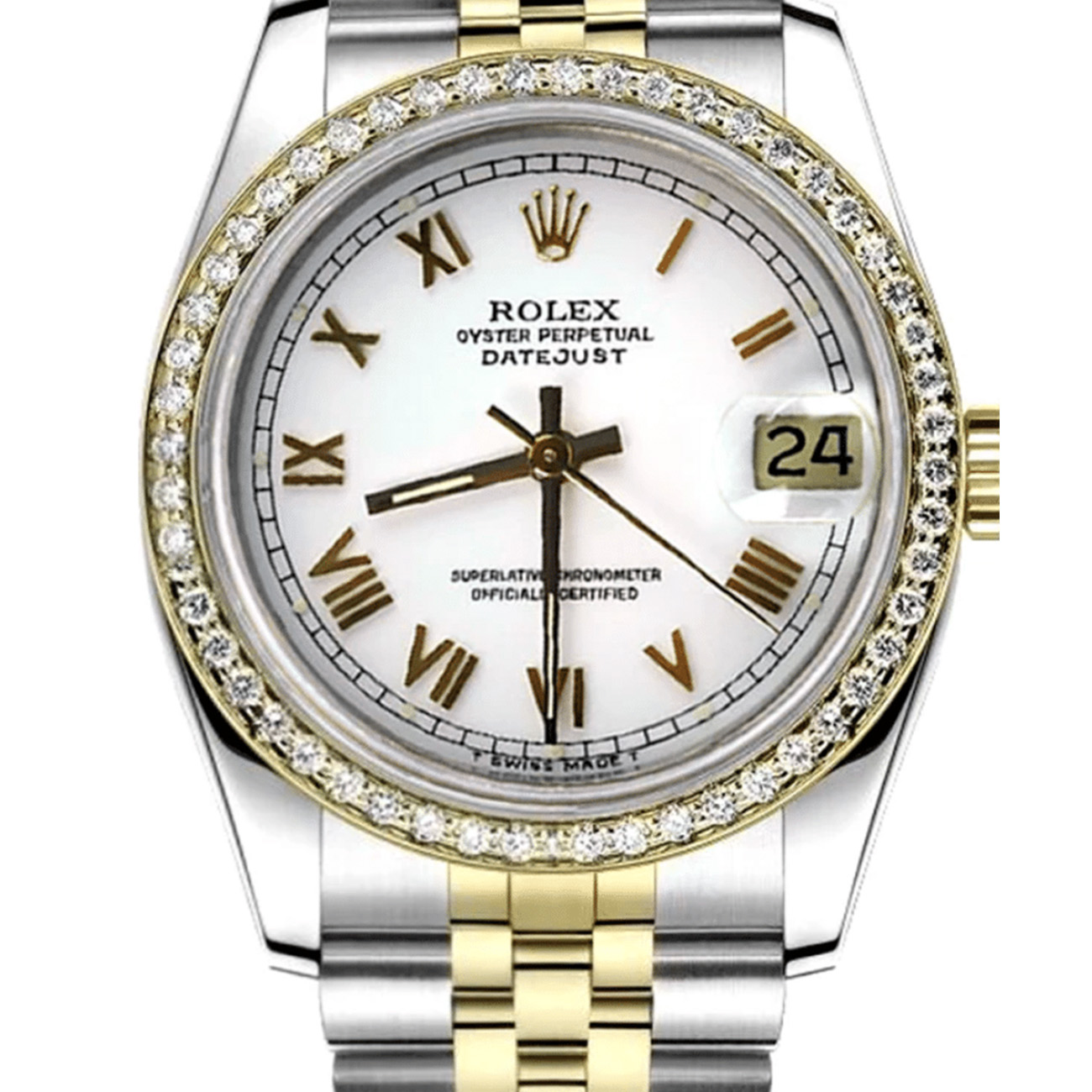 Rolex Datejust 31 White Roman Dial Two Tone Ladies Watch Diamond Bezel 68273
