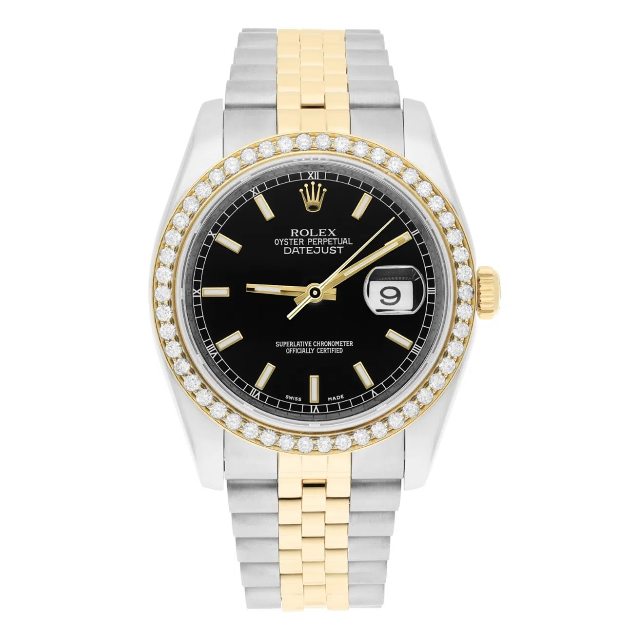 Rolex Datejust 36 2 Tone 116233 Diamond Bezel Black Index Dial Jubilee Band