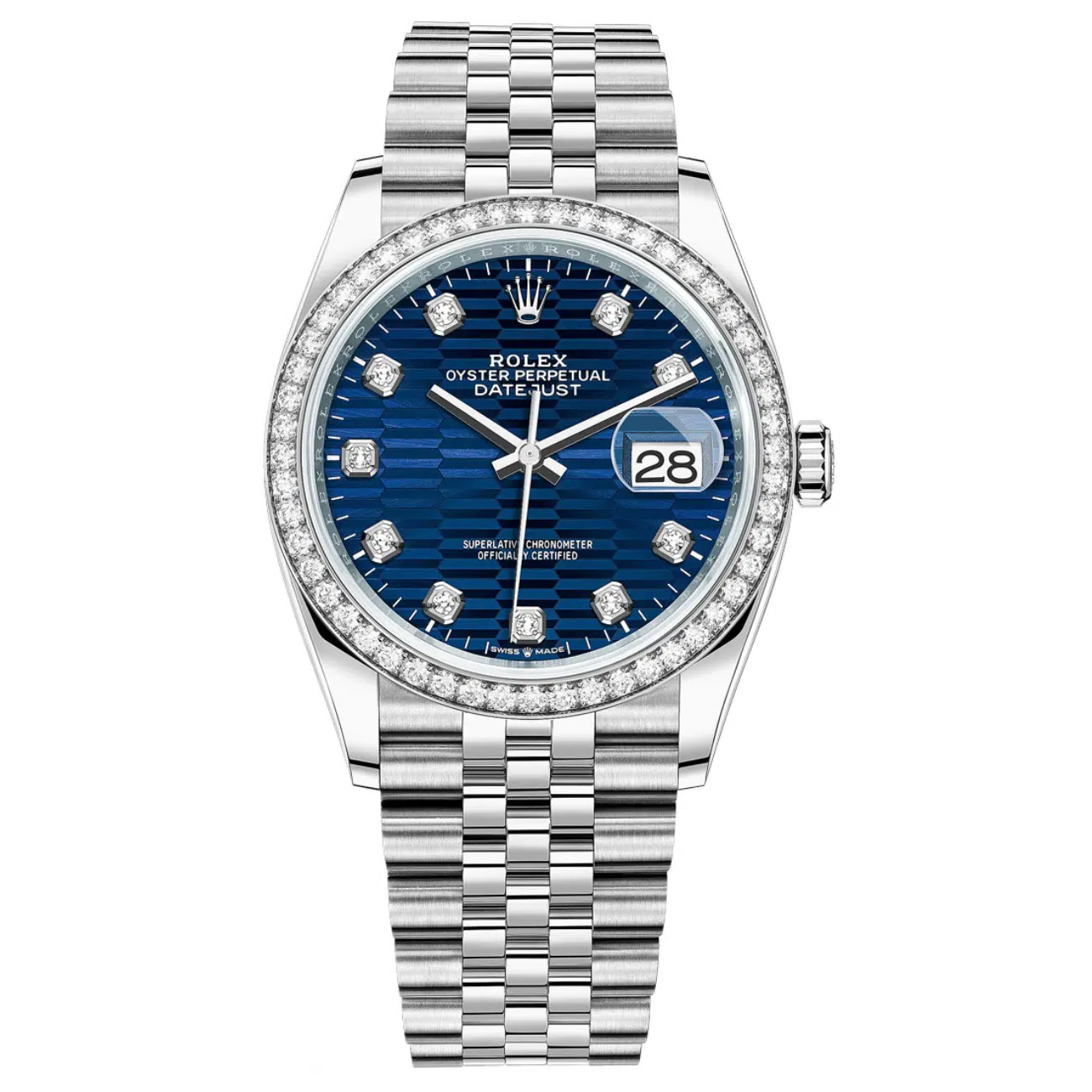Rolex Datejust 36 Jubilee 126284RBR-0049 Stainless Steel With Diamond set Bezel Watch Blue Fluted Motif Diamond Dial 2024