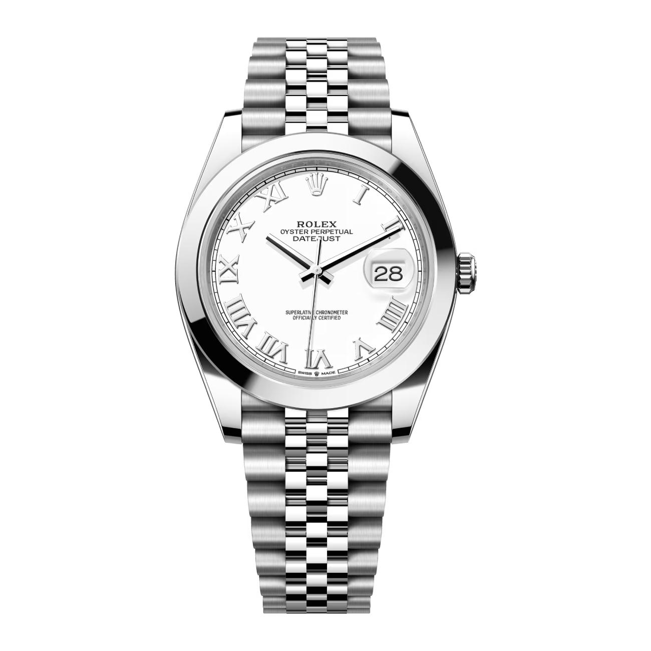 Rolex Datejust 41mm 126300-0016 Stainless Steel White Roman Dial Mens Jubilee Watch 2024