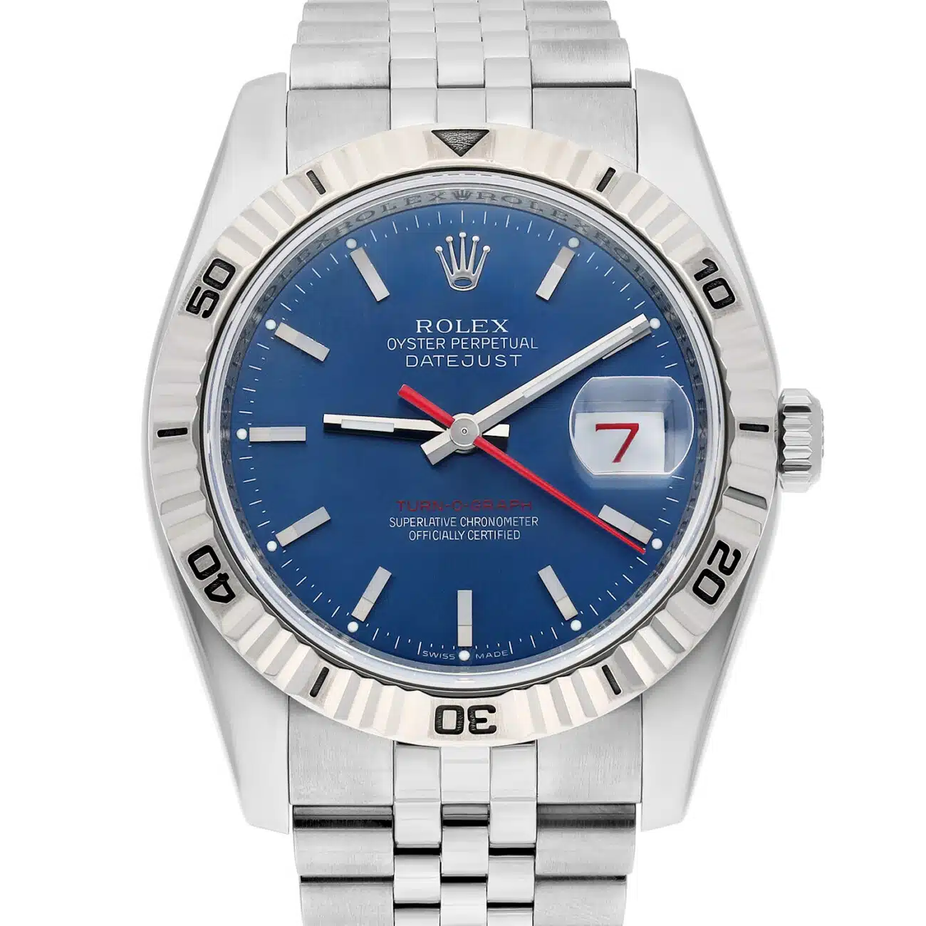 Rolex Datejust 116264 Turn-0-Graph 36mm White Gold Blue Dial Watch
