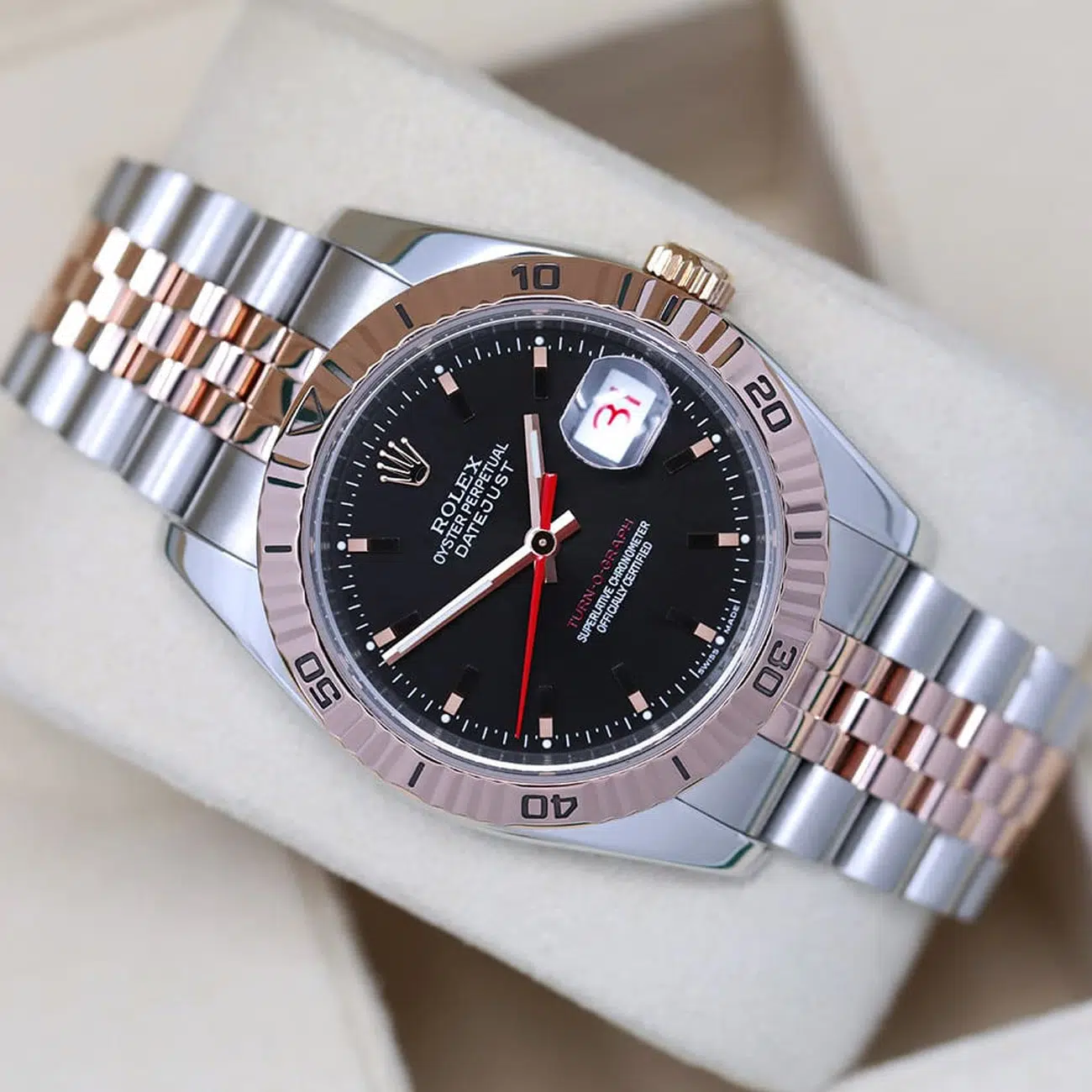 Rolex Datejust Turn-O-Graph 116261 Two Tone Stainless Steen and Rose Gold Watch Black Dial 36mm