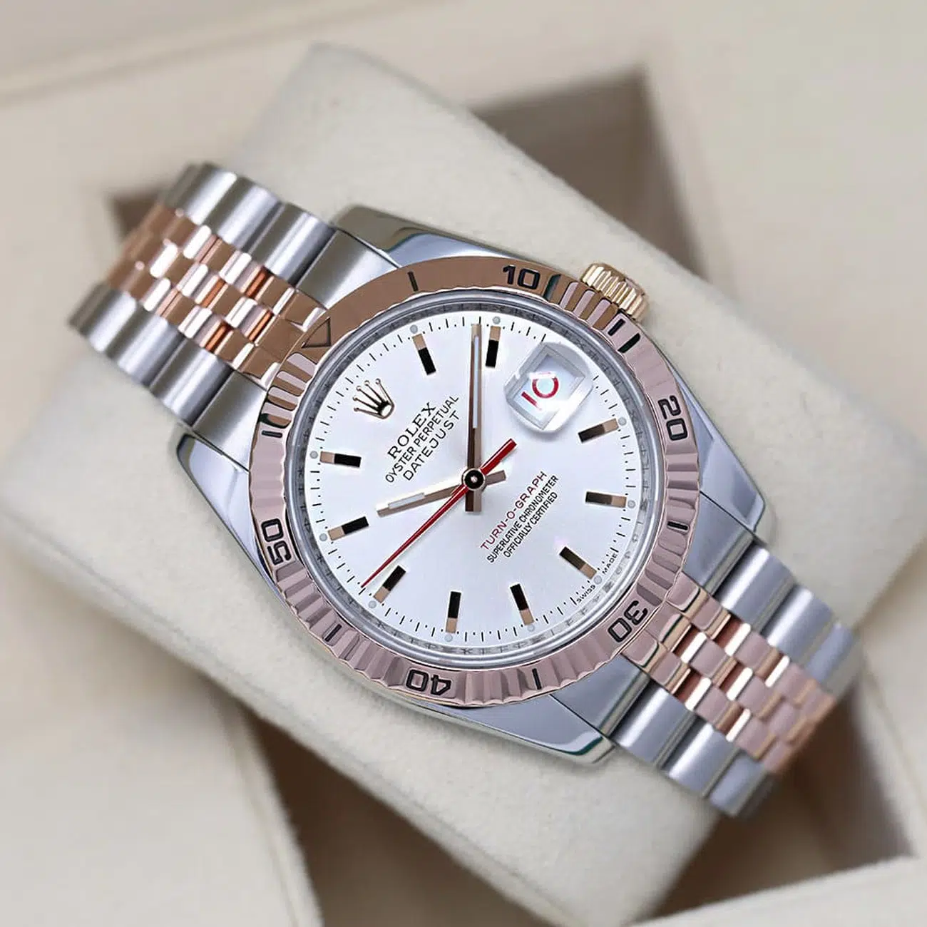 Rolex Datejust Turn-O-Graph 116261 Two Tone Stainless Steen and Rose Gold Watch Silver Dial