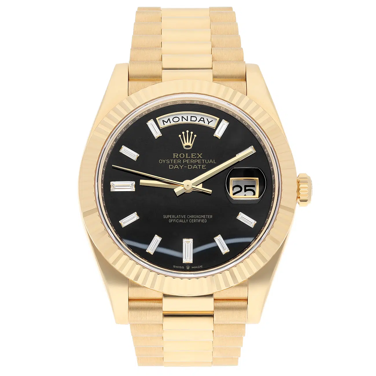 Rolex Day-Date 40 228238-0059 Fluted Bezel Onyx Dial President Bracelet Yellow Gold 2023