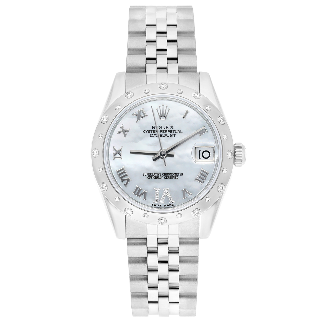 Rolex Ladies Datejust 178344 mrj 31mm Silver Dial Scattered Diamond Bezel Jubilee Band