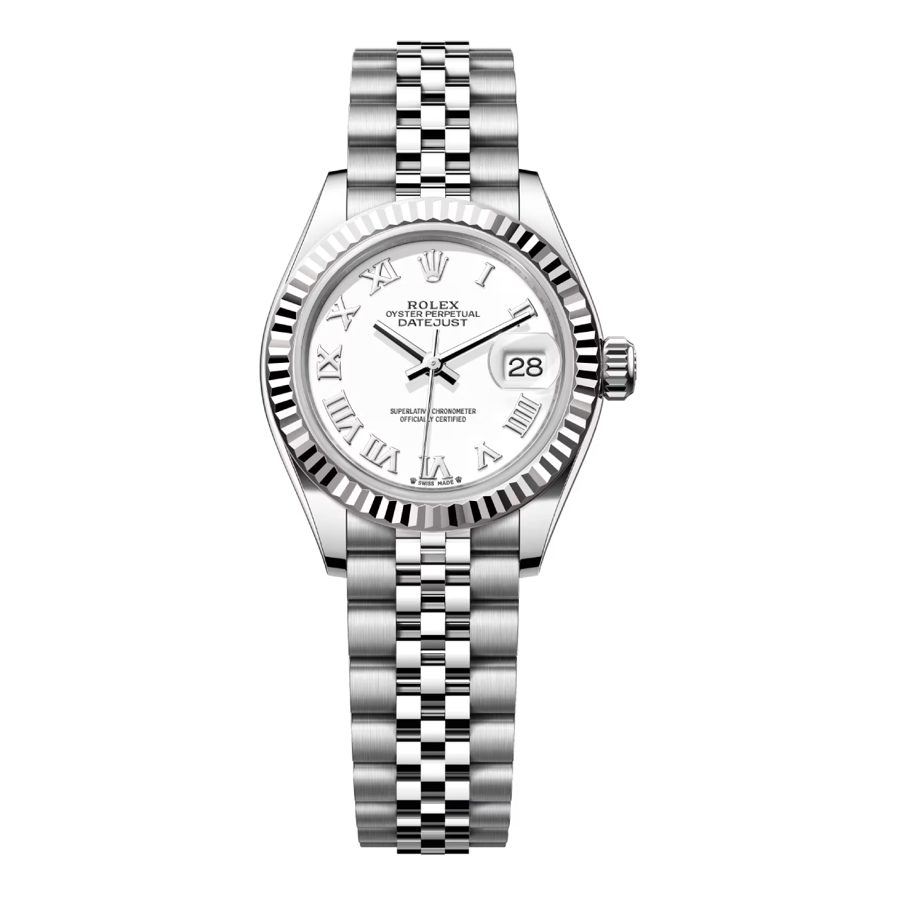Rolex 279174-0019 Steel and White Gold Lady Datejust 28 Fluted Bezel White Roman Dial Jubilee Bracelet Watch 2024